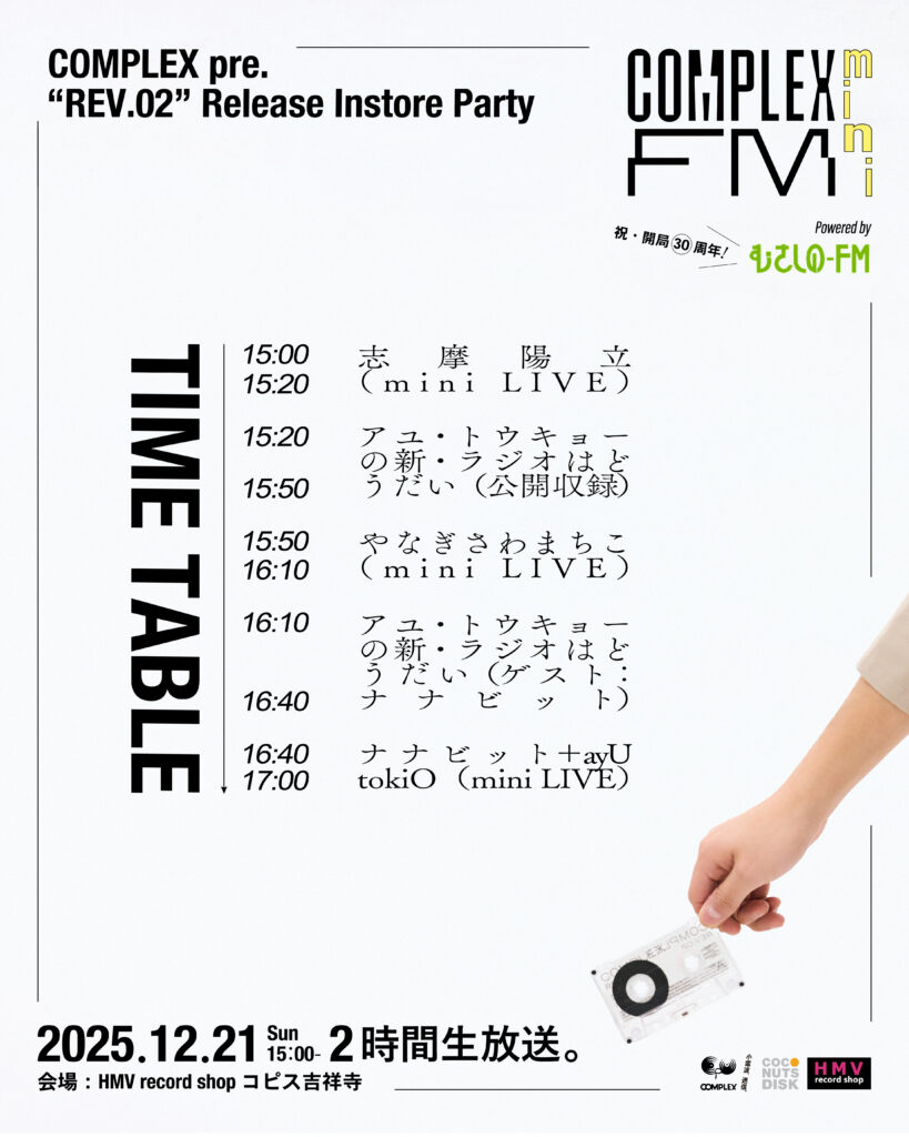 REV(レヴ).02(ゼロツー)』のリリースを記念して、イベント『COMPLEX(コンプレックス) FM(エフエム) mini(ミニ)』が開催決定!!